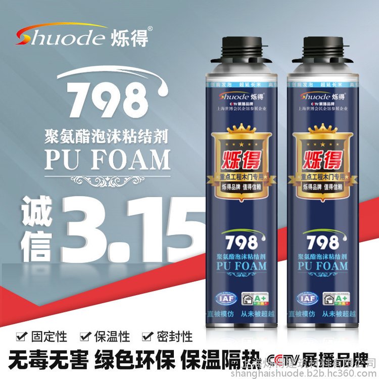 烁得798牌的烁得798喷涂泡沫施工聚氨酯填缝剂厂家批发定制产品:估价:18.00,规格:上海,产品系列编号:上海 发布日期:2025-5-19